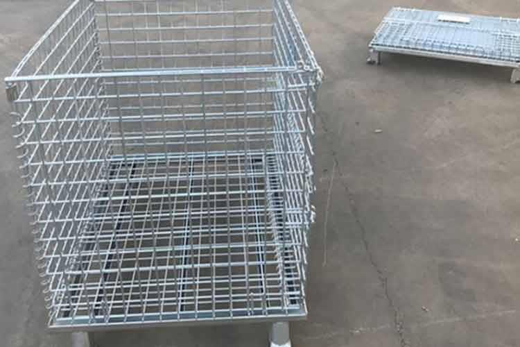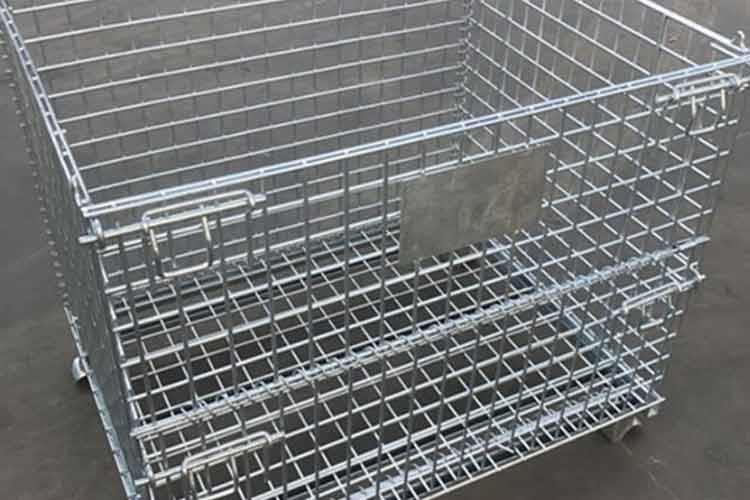 仓储笼的主要原材料是高线拉成的钢丝,一般丝径是5mm,6mm,6.4mm。网片焊接的网目间距一般为50×100,100×100,50×50。仓储笼底部采用U型钢焊接而成,U型钢是冷轧带钢轧机轧制而成,底部四角采用冲压件一次冲制而成。仓储笼采用Q195高线作为原材料,经冷拔成型材。再通过碰焊形成半成品网片。在制作成网片后,可采用镀锌或喷塑进行表面处理(仓储笼大多数采用镀锌处理),表面处理完毕后就可以进行组装,即可制作成成品。
